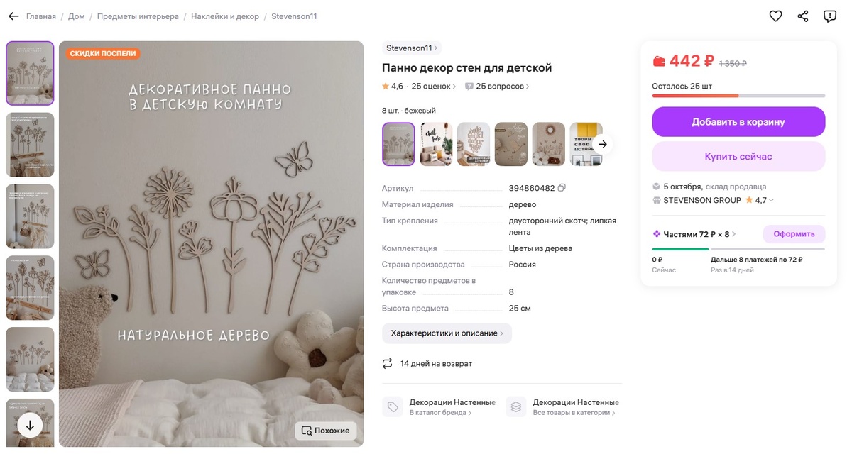 источником идей и хорошего настроения! Иногда хочется, чтобы в доме было особенно уютно: мягкие пледы, красивые детали интерьера и вещи, которые радуют глаз каждый день. Я собрала для вас подборку товаров, которые точно смогут создать настроение тепла и гармонии. Всё это можно найти на Wildberries и, честно говоря, я сама не удержалась бы, чтобы заказать парочку позиций. Если вы хотите добавить в детскую нежности и волшебства - обратите внимание на это панно с цветами. Оно выполнено вручную, поэтому выглядит очень трогательно и живо. Представьте: мягкие объёмные цветы и бабочки украшают стену над кроваткой или в игровой зоне. Комната сразу наполняется теплом и сказочностью. Такой декор легко крепится, он безопасен и не занимает много места. А ещё это классная идея для подарка на рождение малыша или день рождения ребёнка. Интерьер сразу становится особенным, с лёг