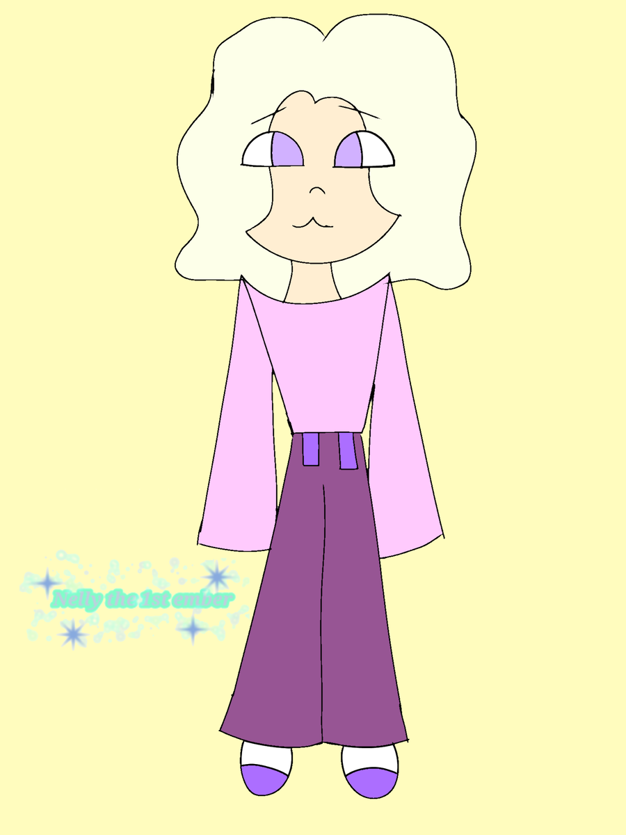 Внешний вид- Светлые волосы, фиолетвые глаза, кошачий рот.