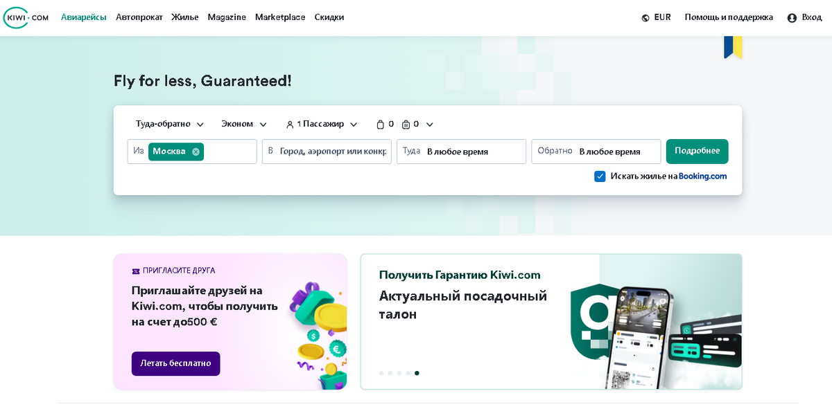Личный кабинет Kiwi.com — это ваш личный помощник в управлении бронированиями. Здесь вы можете легко просматривать свои текущие и прошлые бронирования, вносить изменения в существующие или полностью их отменять. Всё под контролем, как говорят!