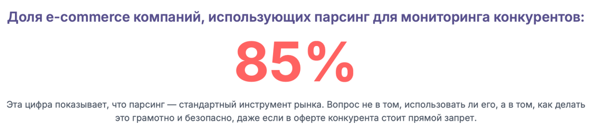 - Всеобщая практика («все парсят всех»). В конкурентных нишах (электроника, бытовая техника, автозапчасти, fashion) мониторинг цен конкурентов — это стандартная и необходимая часть работы. Крупные игроки понимают, что если они подадут в суд на конкурента, то завтра получат симметричный иск в ответ. Это приведет к «ядерной зиме» — дорогим и бессмысленным судебным тяжбам, которые не выгодны никому. Проще молча продолжать собирать данные друг у друга.