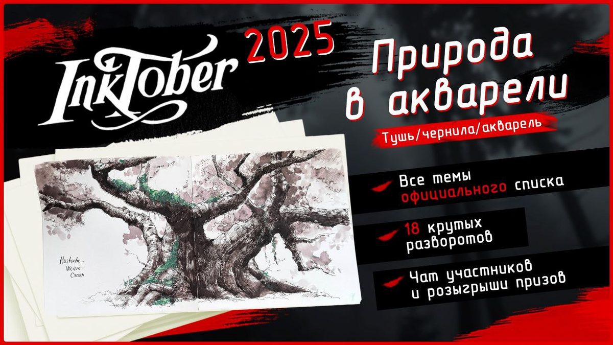 Вас ждет: ✔️ 18 детальных уроков ✔️ 18 эффектных разворотов, в которых отобразим все темы официального списка ✔️ работа с чернилами/тушью и интересные дополнения Вы еще успеете записаться с хорошей скидкой! Подробности и запись здесь: https://dariart.monecle.com/lg/inktober_2025_1