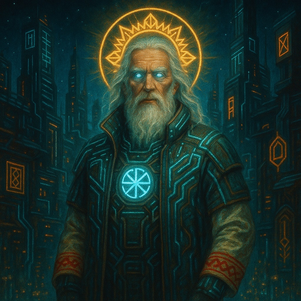 Современный футуризм, особенно киберпанк, редко ассоциируется с традицией. Но если всмотреться внимательнее, славянские мифы и архетипы удивительным образом перекликаются с образами будущего. Белобог, символ света, добра и порядка, в мире технологий становится проводником идей киберрелигии и цифрового культа.
