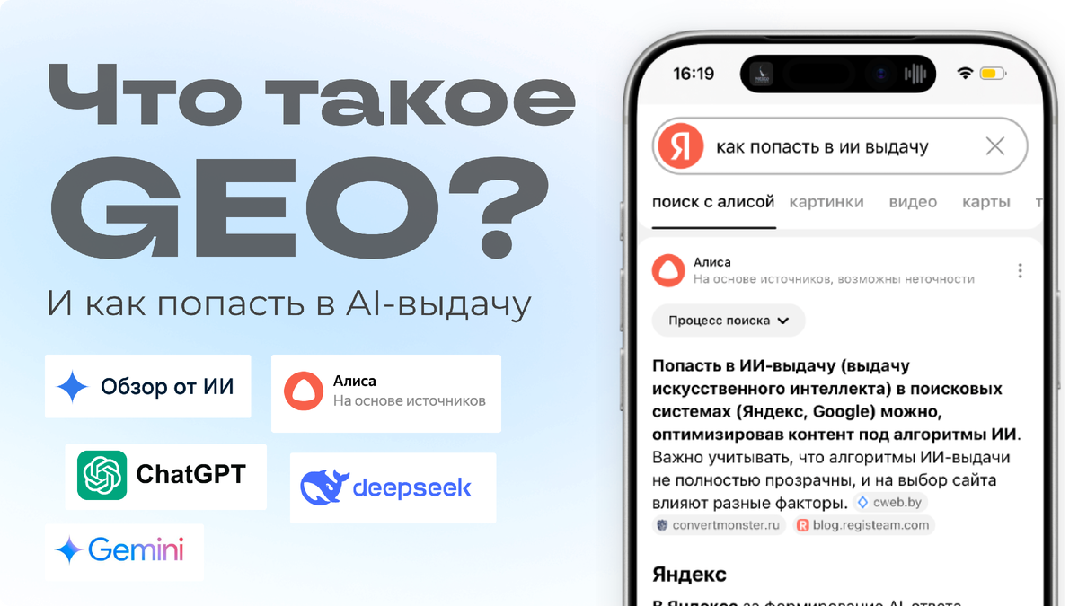 Но не пугайтесь, всё, что мы с вами знали о SEO — по-прежнему важно, просто сейчас в игру входит еще один новый элемент. В англоязычной среде его называют GEO — Generative Engine Optimization. По-русски это можно назвать оптимизация под генеративную выдачу.