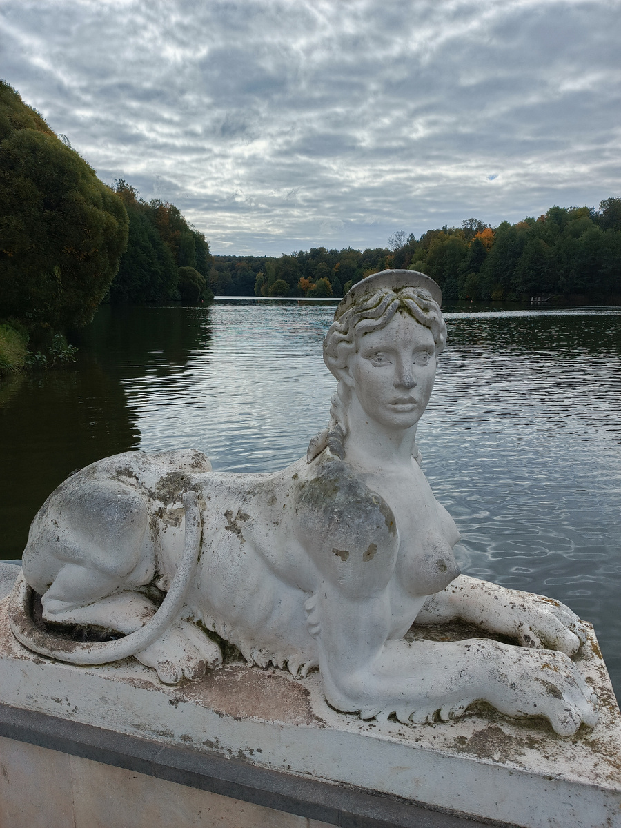 Холодные волны набегали на берег пруда, низкие тучи грозили разразиться мелким осенним дождём. Но обнаженный замёрзший сфинкс на своем пьедестале не мог позволить себе перестать пристально всматриваться в проходивших мимо и фотографирующихся рядом людей. В его взгляде читался все тот же немой вопрос, который он задавал и жителям Фив тысячи лет назад: " Кто ходит утром на четырех ногах, днём на двух, а вечером на трёх?" Но Татьяна, которую в этот ненастный день пригласили прогуляться по парку Царицыно, знала ответ! Ведь она могла работать в этом музейном комплексе экскурсоводом.. Ведь она , когда много лет назад жила рядом и гуляла здесь с детьми, ужасалась , когда они играли на развалинах этих то ли дворцом, то ли замков , постороенных великими архитекторами Баженовым и Казаковым. Тогда большой дворец стоял без крыши, трухлявые кирпичи падали со стен, в которых торчала арматура.. Дворцовые павильоны зияли пустыми глазницами окон.. Облупленные арки и мосты наводили мысли о бренности