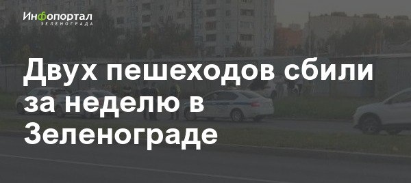 Двух пешеходов сбили за неделю в Зеленограде: один из них с нарушением правил переходил Панфиловский проспект, а второй шел по тротуару напротив 15-го микрорайона. Подробности инцидентов — в публикации Инфопортала. подписаться / обсудить в чате