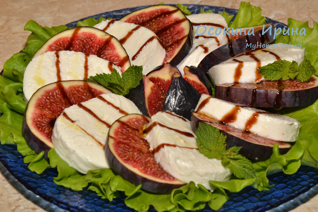 Инжир полезен для организма благодаря высокому содержанию клетчатки, калия, антиоксидантов и других минералов, способствуя улучшению пищеварения, укреплению сердца и костей, а также поддержанию кожи и иммунитета. Он помогает снижать воспаления, стабилизировать уровень сахара в крови, улучшать работу нервной системы и память, а также может использоваться для лечения кашля и бронхита. Проще говоря, в нём столько пользы и он такой вкусный, что грех его не поедать при любом удобном случае. Сезон инжира совсем недолгий, поэтому успеваем) Итак: порезала на кружочки ягоды инжира и моцареллу из рассола и уложила, чередуя, на листья салата, сбрызнула оливковым маслом, бальзамическим кремом, украсила мятой и подала. Просто, быстро и ооочень вкусно) Приятного аппетита