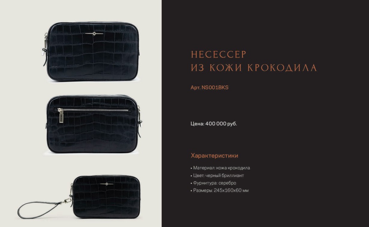 👜 В Москве планируют открыть бутик одежды под брендом Aurus. На первом этаже разместится сам бутик, а на втором — примерочные и пространство для снятия мерок. На выставке «Иннопром. Беларусь» сегодня показали первые товары — сумки, обувь и одежду. Самый дешевый товар из линейки — несессер (сумка для мелких предметов) из кожи крокодила за 400 000 руб. Самый дорогой — мужской рюкзак из кожи крокодила за 2,6 млн руб. Спортивные костюмы будут стоить до 50 000 руб., casual-коллекция будет дороже, но цены еще формируются. Aurus — российская марка люксовых автомобилей, цены на которые начинаются от 50 млн руб. На них передвигается президент России Владимир Путин, в том числе во время зарубежных поездок. Фото: aurus-collection. ru. 🤩 Больше про торговлю и потребителей — на канале Shopper's. Подписывайтесь!