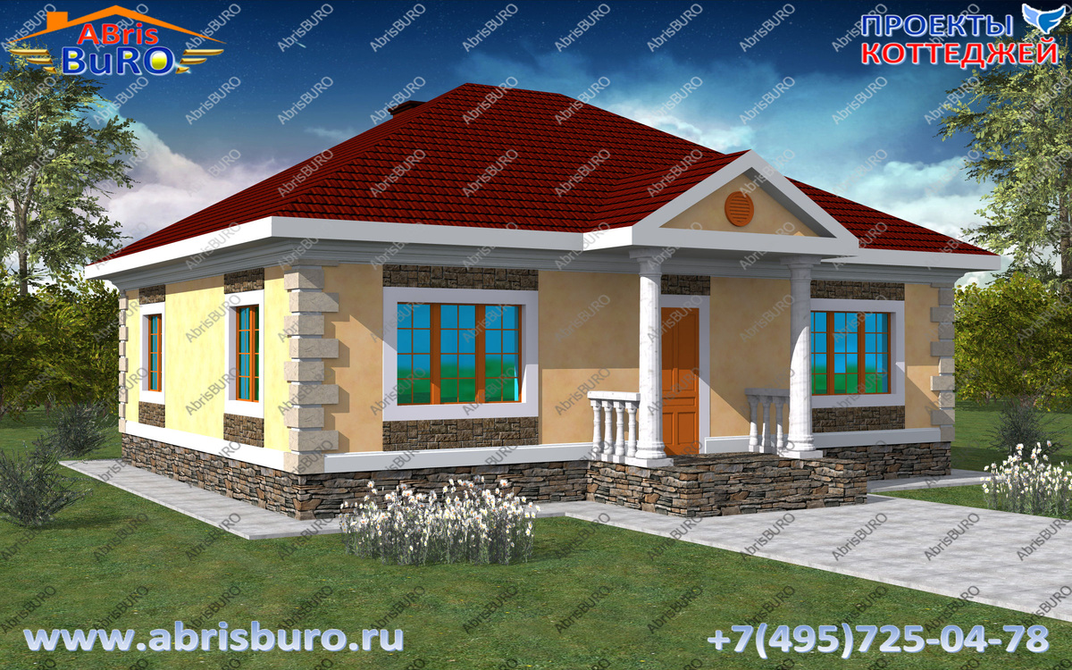Проект одноэтажного дома с тремя спальнями и четырехскатной крышей K0187-98 Проект одноэтажного коттеджа с тремя спальнями и чердаком из газосиликатных блоков общей площадью 97,9 кв.м. и габаритными размерами 12,2 x 10,2 м. Проектирование коттеджей и загородных домов в архитектурном бюро AbrisBURO-проекты коттеджей. План 1-го этажа дома (Plan of the first floor of the house) Фасады дома (Facades of the house) Разрез дома (Section of the house) Общая площадь 97,9 м2 Габариты дома 12,2 x 10,2 м Высота 1-го этажа (в чистоте) 3,0 м Высота дома в коньке 6,483 м Фундамент - монолитный ж.б. плитный или ленточный или свайно-ростверковый Стены несущие - газобетонные блоки или теплая керамика или керамзитобенные блоки или теплоблоки или кирпич Перекрытия - по деревянным балкам Кровля - металлочерепица или гибкая (мягкая) кровля Возможность внесения изменений в проект - Да, любые изменения Состав проекта - АР (архитектурные решения), КР (конструктивные решения), ИР (инженерные решения) Стоимость