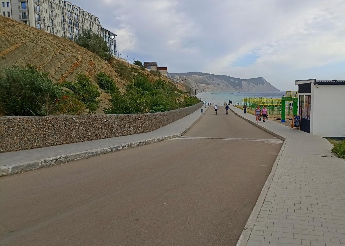 Минуем этот проход, и вот тут точно конец Новой набережной, перегороженный низкой оградой. Хотя в местной прессе пишут, что "продолжение следует", и сейчас строится следующий полуторакилометровый участок в направлении посёлка Сукко. Окончание стройки планируется в марте 2026-го года. Но в реальности там ещё "и конь не валялся" (вот, наверное, к чему были сфотографированные мною кони!). Шутка, конечно.