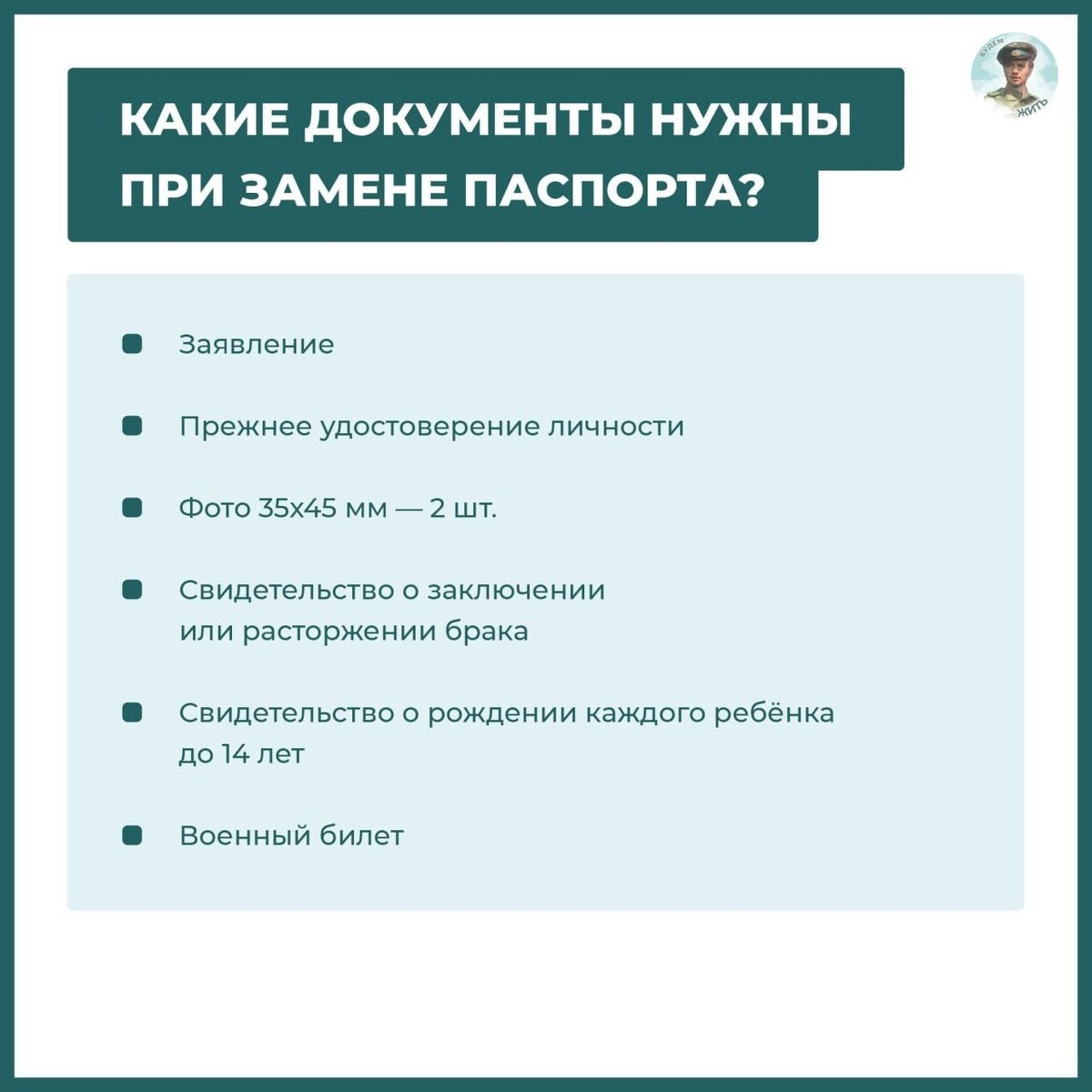 📌 Замена паспорта РФ по возрасту Что важно знать? После достижения 20 или 45 лет в течение 90 дней необходимо подать заявление: 📍 на Госуслугах; 📍 в ближайшем офисе МФЦ; 📍 в отделении МВД. На что обратить внимание? По истечении этого срока документ становится недействительным, а оформить новое удостоверение личности можно только через территориальные органы внутренних дел. Что потребуется, смотрите в карточке⤴️⤴️⤴️ #оформление_документов ————— Поддержите канал Подпиской на "Сыны Отечества" или Голосом за канал ✅ подписаться |⚡️проголосовать 📲Наш проект в социальных сетях: Вконтакте, Одноклассники, Дзен, RuTube