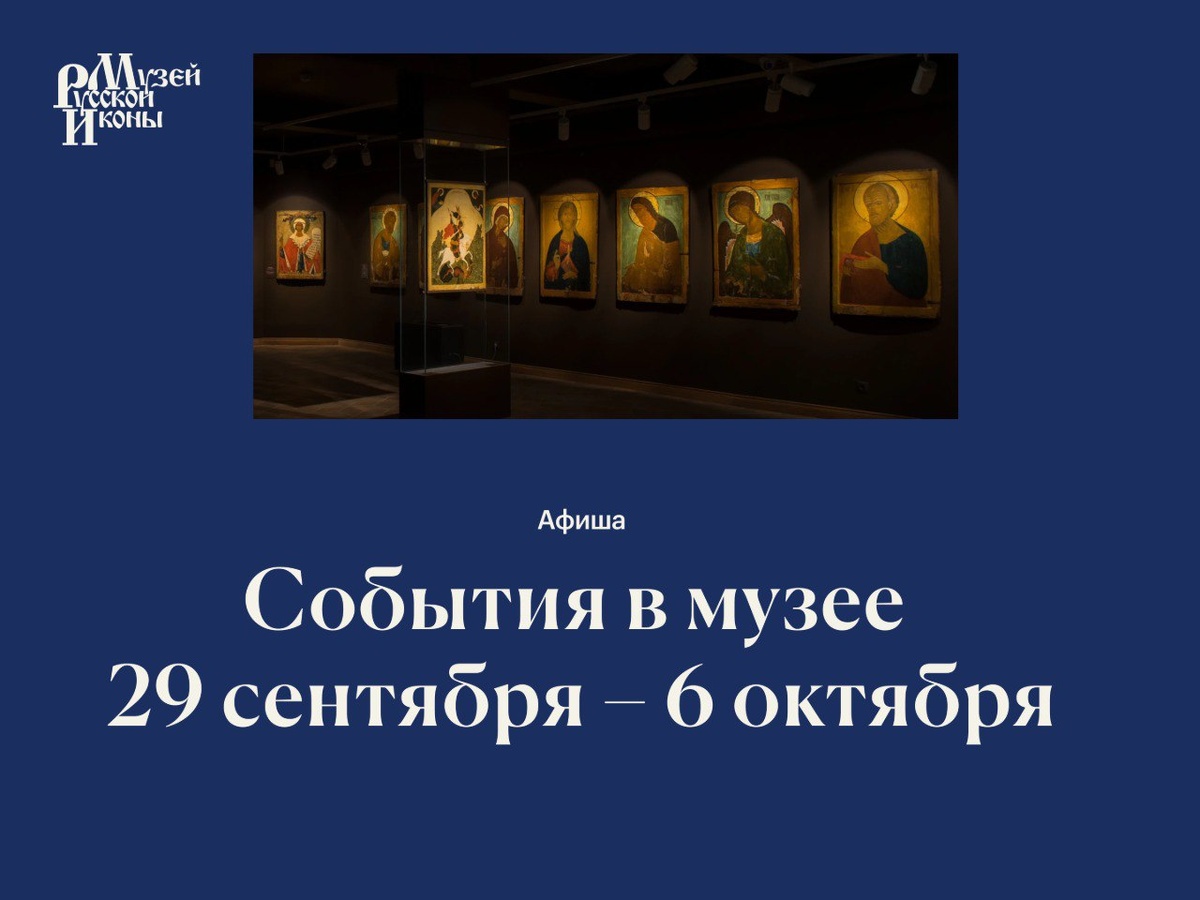 События в музее | 29 сентября – 6 октября Рассказываем о мероприятиях в музее и ждем вас в гости! Для концертов написали время открытия регистрации: шансы «поймать» билет выше, если перейти по ссылке в указанное время. Экскурсии 30 сентября – 7 октября Обзорные и тематические программы на любой вкус. 🔸 Посмотреть подробнее и записаться по ссылке. 2 октября, четверг, 19:00 Онлайн-лекция «Икона эпохи классицизма». Лектор – Ж.Г. Белик. 🔸 Регистрация не требуется, трансляция по ссылке. Запись будет доступна в течение 14 дней. 4 октября, суббота, 19:00 Концерт с комментарием «Духовная поэзия Нижнепечорья». В программе русский фольклор вместе со сказителем Александром Маточкиным. 🔸 Регистрация откроется: 29 сентября, 19:00 по ссылке. 5 октября, воскресенье, 19:00 Концерт с комментарием «Образы христианского мира в русском фольклоре». В программе прозвучат образцы различных жанров русского фольклора, в которых раскрываются образы христианских святых и праведников. 🔸 Регистра