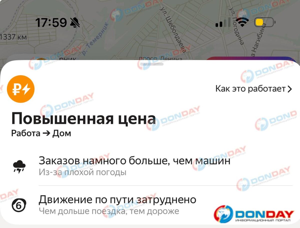 Как вам такое? 😡 Службы такси взвинтили цены на свои услуги. В обосновании цены агрегатор пишет, что временно стоимость поездки увеличена из-за непогоды. То, что во время непогоды цены взлетают, это мы привыкли. Но как службы такси могут повышать цены, если непогоды нет? Ни дождя, ни даже намека на осадки в центре Ростова 😤 А сколько у вас стоит такси сейчас? И идет ли у вас в районе дождь?