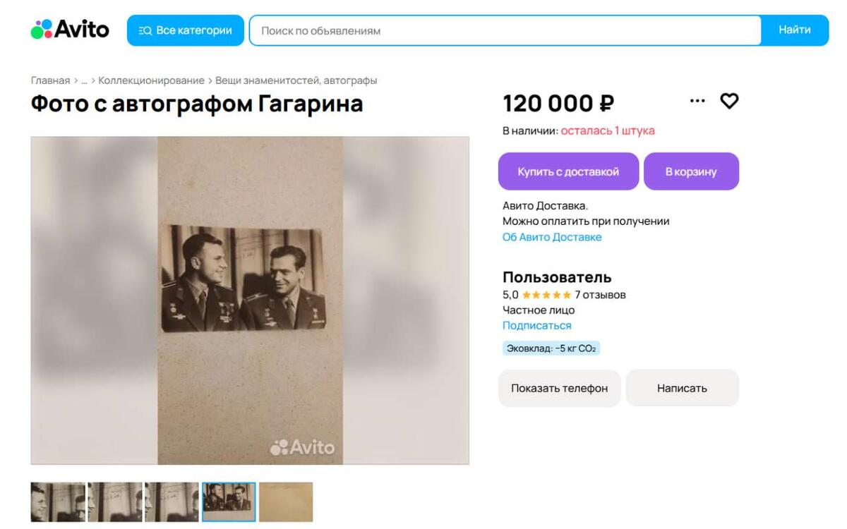 Автограф Юрия Гагарина – первого человека в мировой истории, совершившего полет в космос, – выставили на продажу в Воронеже. Согласно информации, размещенной на сайте объявлений «Авито» в четверг, 25 сентября, лот оценили в 120 тысяч рублей.
