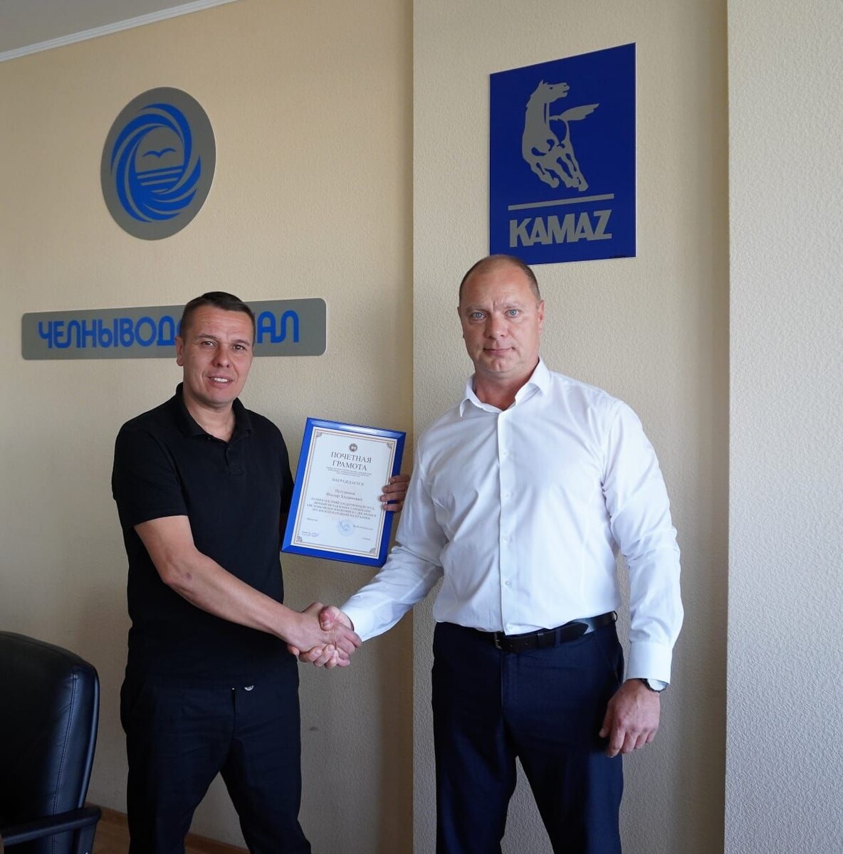 Мастера производства городских сетей компании «Челныводоканал» Ильдара Нугуманова наградили Почётной грамотой Министерства строительства, архитектуры и ЖКХ Татарстана за восстановление инфраструктуры водоснабжения Лисичанска. Церемония прошла на родном предприятии.