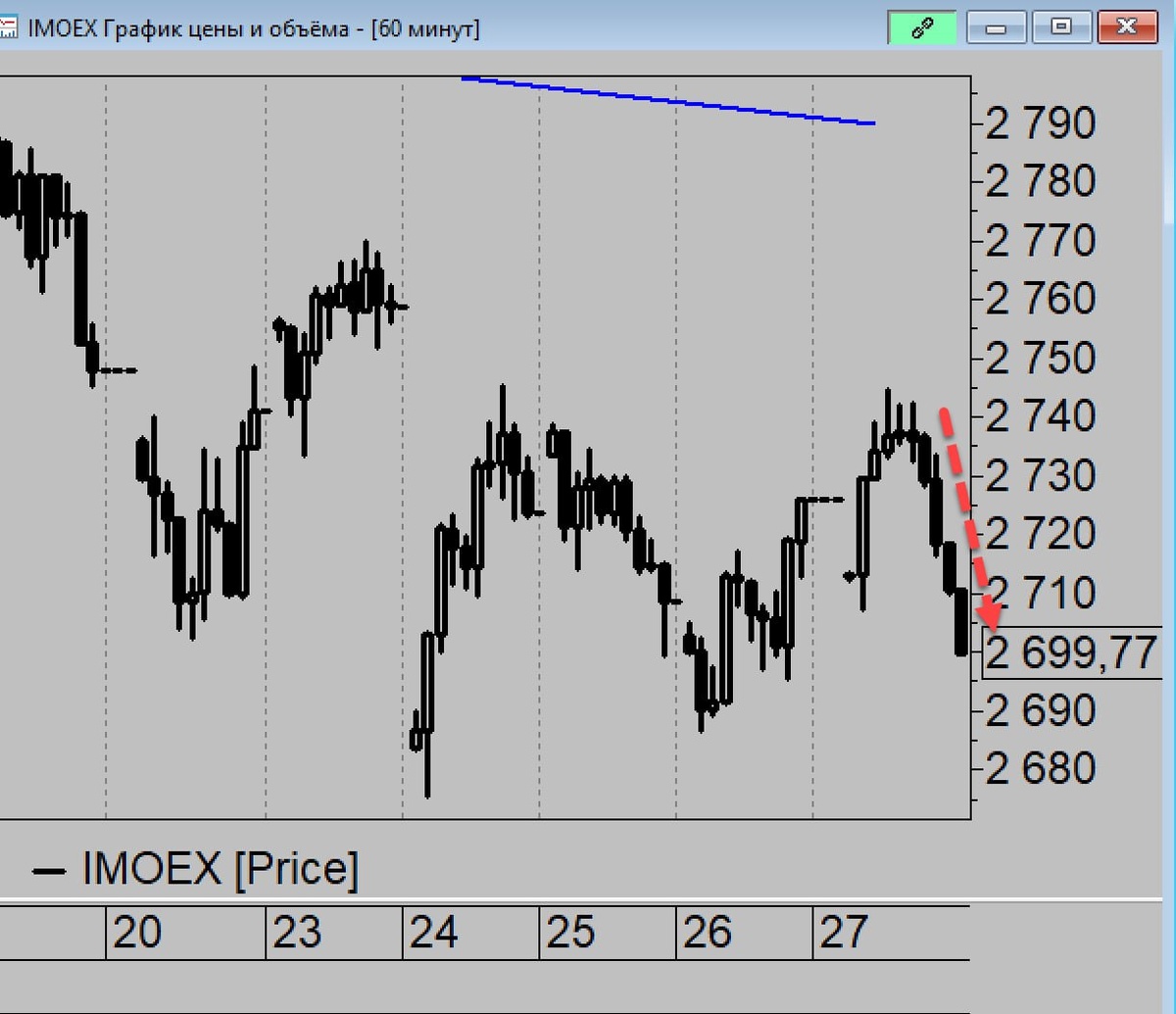 На конец дня к сожалению рынок показывает ровно то, о чём говорилось в видео в предыдущем посте... ⬆️ Что шорт Юридических лиц, это не игры на спред и не хеджы и т.д. а просто шорт. Сегодня рынок завалили без каких либо страшных новостей. Просто потому что могут. В середине дня ещё скидывал вам что ударили по паре индексных бумажек, ещё когда всё остальное сильно росло, по сути необоснованно и после этого у нас планомерно давили весь индекс. Пока на рынке всё сводится к игре нескольких крупных игроков. 2700 пока ещё держится... хотя всё очень напряжно. Т.к. шорт они сегодня только увеличивали. Надеюсь их когда-нибудь накажут.
