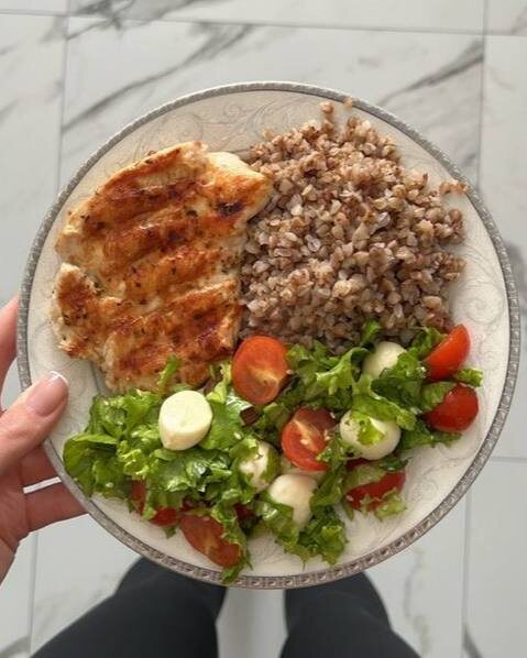 🍴Идеальное сочное куриное филе на ужин Ингредиенты: • Куриное филе – 200 г • Оливковое масло – 1 ч. л. • Соевый соус – 1 ст. л. • Лимонный сок – 1 ч. л. • Чеснок – 1 зубчик (или щепотка сухого) • Паприка, перец, соль – по вкусу Маринад: 1. Смешайте масло, соевый соус, лимонный сок, измельчённый чеснок и специи. 2. Нарежьте филе пластами, залейте маринадом. 3. Накройте и оставьте на 20–30 минут (или до 2 часов в холодильнике для более насыщенного вкуса). Приготовление: 1. Разогрейте сковороду (лучше с антипригарным покрытием). 2. Обжарьте курицу на среднем огне 3–4 минуты с каждой стороны до золотистой корочки. 3. Если куски толстые, накройте крышкой и доведите до готовности на слабом огне ещё 3–4 минуты. Подавайте с гречкой и овощным салатом с моцареллой. Такое блюдо отлично подходит для обеда или ужина: оно сбалансированное, богатое белком и сложными углеводами, с достаточным количеством клетчатки. Приятного аппетита ♥️