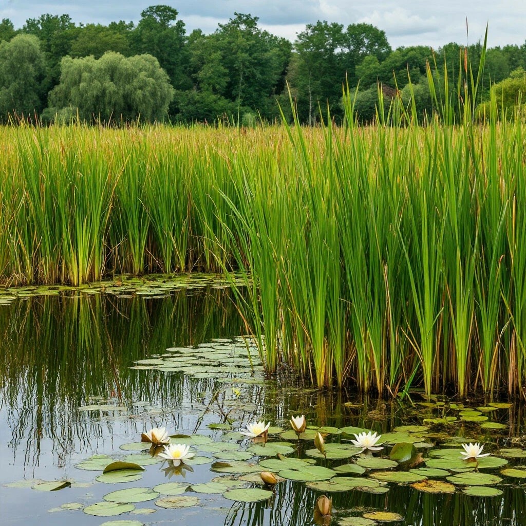 Аир болотный (Acorus calamus L.) Многолетнее травянистое растение с крепким ползучим корневищем, достигающее высоты 60–120 см. Корни имеют бурый цвет с белой или розовой внутренней частью. Стебель плоский и тригранный. Листья длинные, мечевидной формы с острым концом. Цветки небольшие, зеленовато-желтые, собраны в початок. Околоцветник состоит из шести узких чешуйчатых листочков, правильной формы. Початок немного отклонен в сторону и выглядит боковым, у его основания находится длинный мечевидный чехол. Все части растения обладают ярким и характерным ароматом. Высушенные корневища содержат эфирные масла с приятным запахом и пряным вкусом, включающие борнеол, эвгенол, азарон, камфен, камфору, кариофиллен, каломен и азулен. Также в сухих корневищах присутствуют крахмал, дубильные вещества, горький гликозид акорин, алкалоид каламин, витамин С и камедь. Цветение происходит в июне. Сбор корневищ проводят весной (апрель-май) или осенью (сентябрь-ноябрь). Листья собирают в июне-июле. Д