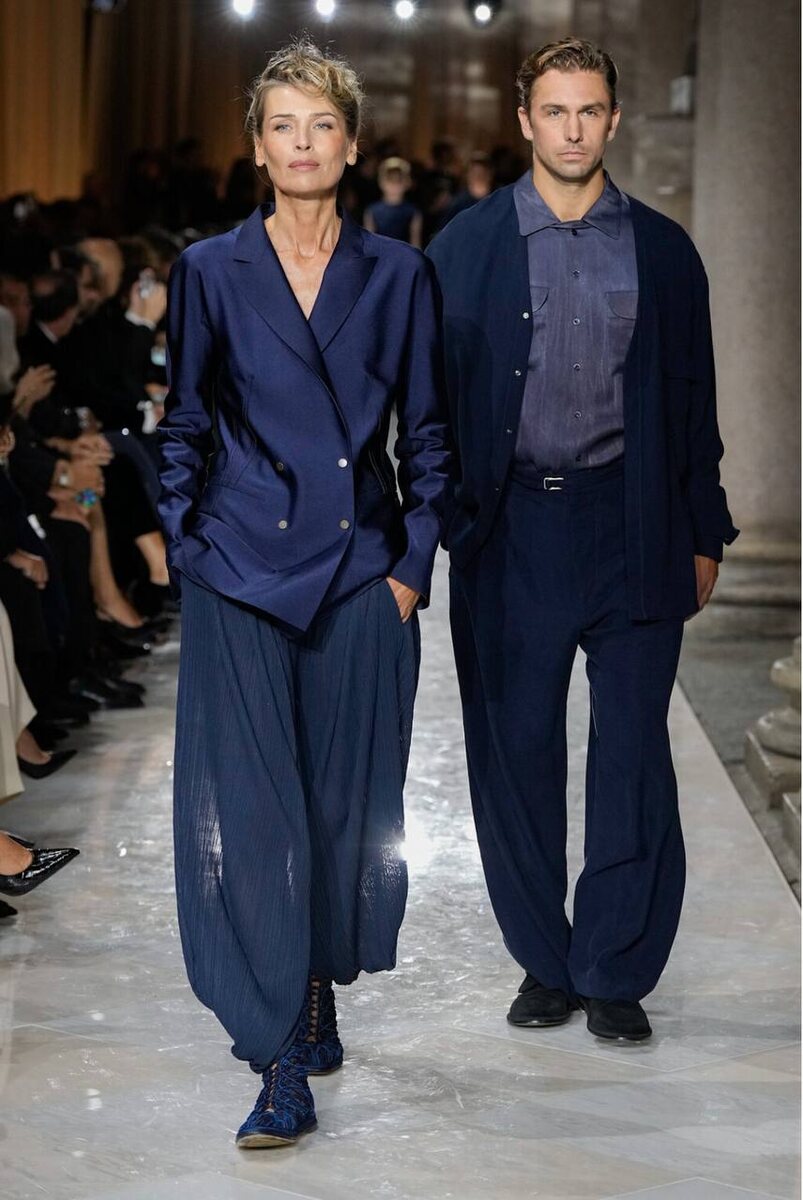 Состоялся последний показ Джорджио Армани В миланской Пинакотеке Брера прошел показ в честь 50-летия бренда Giorgio Armani. На подиуме представили 125 образов — удлиненные пиджаки, брюки свободного кроя и свитеры в песочной, серо-бежевой и темно-синей гамме. Особое впечатление произвело платье с портретом Армани, вышитым бисером. Среди гостей были Ричард Гир и Лорен Хаттон, Гленн Клоуз, Кейт Бланшетт, Сэмюэл Л. Джексон и Спайк Ли.