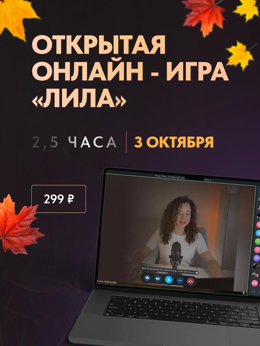 ГРУППОВАЯ ИГРА ЛИЛА со зрителями 📆 3 октября в 13:00 по Мск 🌐 онлайн ⌛️ 3 часа Для тех, кто хочет: ⁃ узнать больше об игре ⁃ обучиться игре ⁃ поиграть/посмотреть за процессом игры Что будет: ✨ Объясню смысл и правила игры ❗️ Игра сама выберет 2-х участниц с которыми мы будем играть, а остальные смогут быть в роли зрителей ✨ вы увидите, как можно быстро и эффективно проводить игру с помощью духовно-психологического метода ведения 🔴 Игра под запись СТОИМОСТЬ УЧАСТИЯ В ОНЛАЙН-ВСТРЕЧЕ - 299 ₽ *если после оплаты не добавились в группу, напишите мне @lidia_va Жми на кнопку, чтобы записаться и оплатить 👇👇👇👇 https://r.bothelp.io/tg?domain=liidiav_bot&start=c1730139824197-ds&utm_source=tg