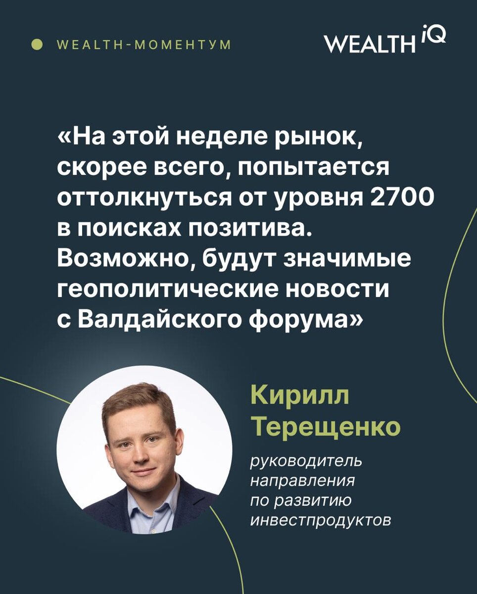 ↗️ Дневник стратегии «Wealth-Моментум»: стабильно тяжелое состояние 💬 Кирилл Терещенко, руководитель направления по развитию инвестиционных продуктов Что произошло за неделю на рынке и в стратегиях Всю прошлую неделю индекс Мосбиржи торговался в боковике, снизившись на 0,8%, на фоне обострения геополитической риторики со стороны западных стран и новостей о грядущих повышениях налогов. Обе стратегии за этот же период также не продемонстрировали ярко выраженной динамики, снижение составило примерно 0,4%. Вышедшие цифры по проекту бюджета не сильно удивили рынок акций, отразив лишь снижение планируемых доходов и оставив планы по расходам на прежнем уровне. А вот индекс RGBI продолжил снижаться на фоне ожидаемого роста заимствований. Что мы сделали в портфеле Без яркой динамики на рынках состав портфеля снова почти не изменился. Из лидеров импульсного движения выбыли бумаги компаний «Новатэк» и «Хэдхантер», на замену им пришли «Норникель» и «Интер РАО». Чего ждем дальше На этой неделе