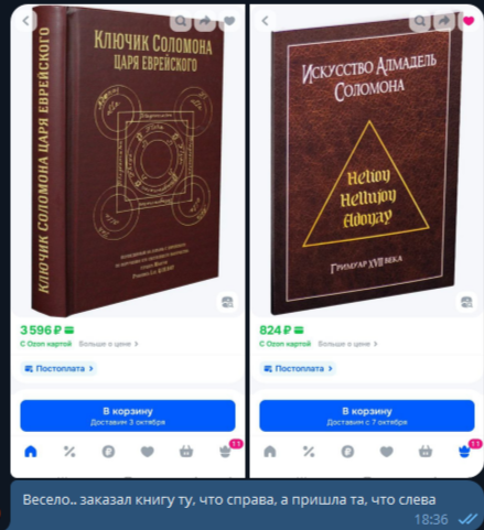 Я радовался, как ребенок, когда оценил эту ситуацию. Ведь буквально пять дней назад я ждал книгу с другим названием и оформлением. Особенно мой восторог подкрепила информация уровня цены, содержание полученной книги по факту.. А это Скрижали Соломона в переводе с арамейского на латынь и в последствии на русский язык. А вторую книгу я перезаказал снова... Немного о самой книге... Считаю ценным подарком в мою личную библиотеку..
