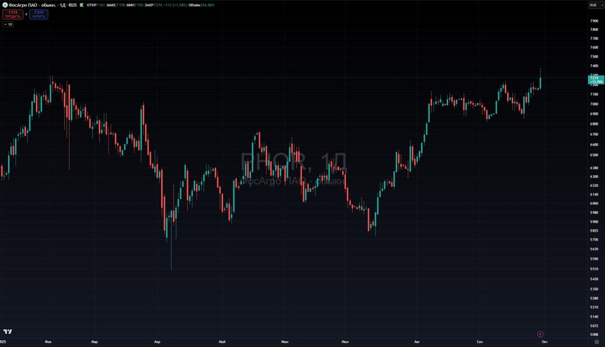В ответ на пост Но я неделю стою в лонге... Есть одна бумага в РФ, которая сегодня закрывает основную сессию на максимальных за 2.5 года значениях. Это Фосагро