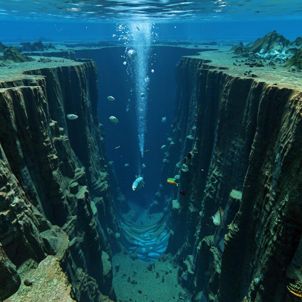 - Максимальная глубина: Рекордная точка зарегистрирована в Марианской впадине, расположенной недалеко от острова Гуам. Глубина здесь превышает 11 тысяч метров (около 11 034 метра). Эта область известна как Бездна Челленджера.