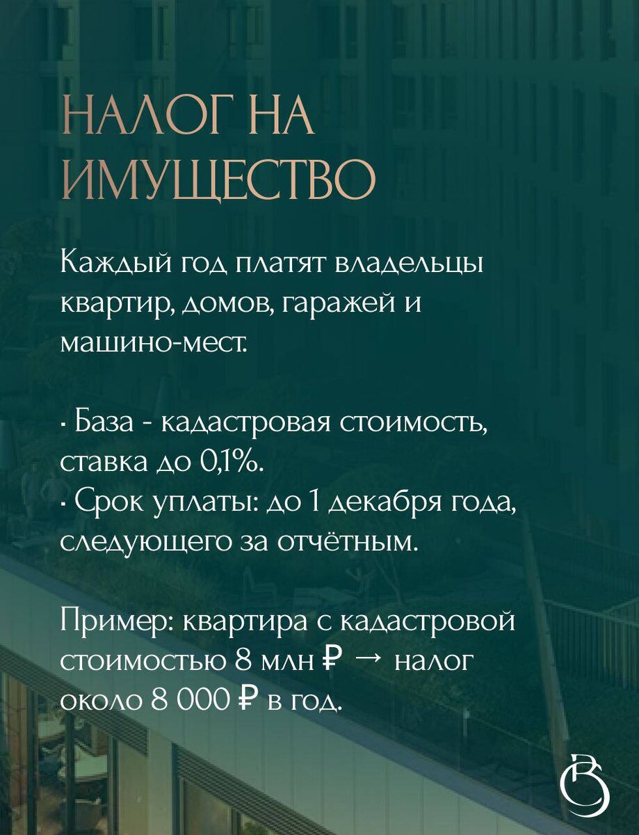 Мы собрали для вас ключевую информацию в карточках! Налоги — это не только про обязательства, но и про стратегию. Понимание нюансов поможет сохранить капитал. Наш Телеграм: https://t.me/+InljjPTQxcUwZThi Бесплатный курс по инвестициям в недвижимость: https://t.me/bigcity_invest_bot Если хотите выгодно купить квартиру: https://mrqz.me/65e6eee2ef47d600261ba343