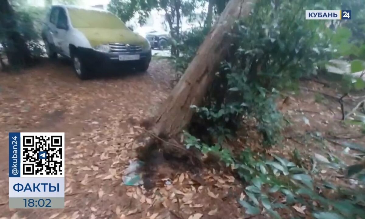«На курорте пасмурно третий день подряд, похолодало. В одном из дворов дерево повисло на проводах, оно может упасть в любой момент, когда дождь усилится. Синоптики до конца дня прогнозируют ухудшение погоды», — сообщает специальный корреспондент телеканала «Кубань 24» Юлия Проценко.
