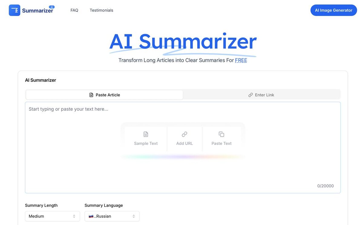 Получаем выжимку любой статьи или текста за СЕКУНДЫ — нейронка полностью уберёт необходимость читать длинные материалы. Имбовые возможности AI Summarizer: ⚡️Можно разом загрузить текст до 5000 символов или URL статьи. ⚡️Сервис поддерживает более 20 языков, в том числе и русский. ⚡️Можно регулировать объём выжимки — от краткого обзора до детального изложения. ⚡️Полностью БЕСПЛАТНО. Забираем годноту тут, пригодится. CtrlAltDelights- подписаться