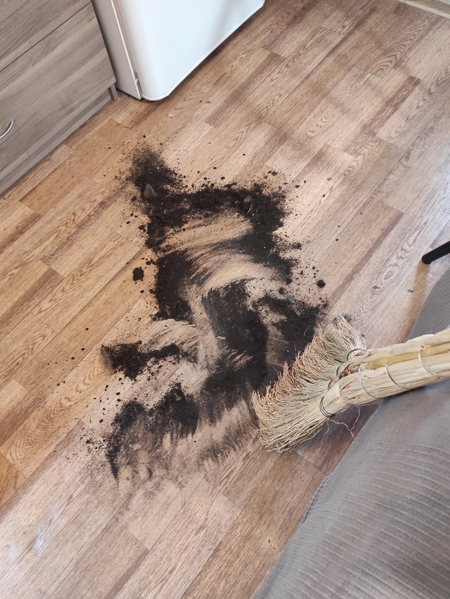 Понедельник, по традиции - день тяжелый, будильник пропел своё будничное Рококо, и мы с Чуней, поеживаясь, вылезаем из-под одеяла. А утро выдалось хулиганское, пока ходила в ванну и приводила себя в порядок перед рабочим днем и строила планы, куда мне разместить свою свеже-приобретенную хризантему, Чушка решила, что ей катастрофически не хватает растений для вандализма и грохнула горшок с хризантемой на пол! Как она это провернула я не знаю, каждый раз увлекательные и великолепные идеи у неё рождаются молниеносно. Наверное, лезла через него по очень важным делам, а разросшаяся филейная часть не прошла, что привело к падению! Пока убирала и искала другой горшок (а я же вчера все вакантные вывезла на участок), про кофе уже и речи не было! Хризантема отделалась легким испугом, сильно не пострадала, за исключением пары веточек. И вполне благополучно была определена на новое место жительства. Чуня конечно для профилактики получила нагоняй, и надувшись, уселась сетовать на превратности суд