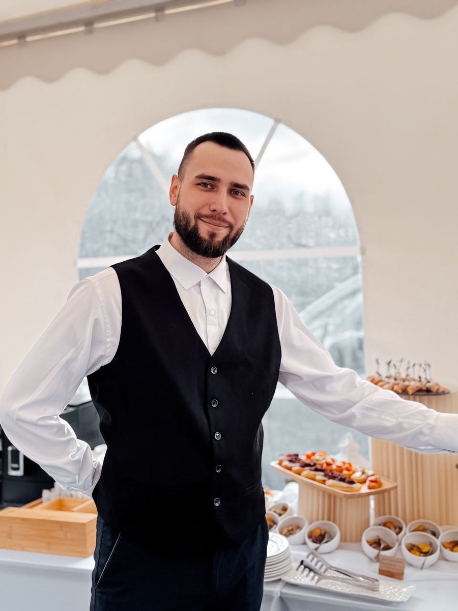 мероприятия! Именно эти люди создают комфортную атмосферу: они уделяют внимание каждому гостю, подавая напитки или вовремя пополняя алкоголь в бокалах, они своевременно убирают всю использованную посуду со столиков, заменяют тарелки и приборы на чистые, и казалось бы, это основной функционал официантов на празднике. Но также, официант должен уметь расположить к себе гостей, показать доброжелательность и отзывчивость, чтобы гости на празднике почувствовали себя комфортно и уютно. В отличие от ресторанной работы, где официанты закреплены за определёнными столами, в кейтеринге задачи более разнообразны. На фуршете они постоянно в движении: расставляют закуски, следят за наполненностью столо