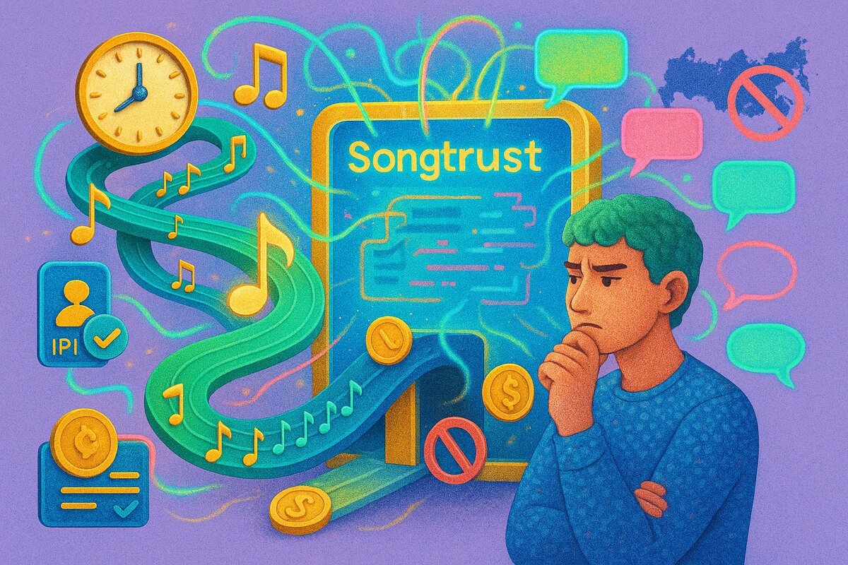 Сервис обещает собирать ваши авторские роялти по всему миру, но на практике, похоже, не всё так гладко. Один из моих подписчиков (медиаменеджер с опытом работы в РФ/UK) поделился своим кейсом, который заставляет задуматься. Он прошёл весь путь от начала до конца и рассказал, как всё устроено и с чем он столкнулся. Вот его инструкция по старту работы: ▫️ IPI. У вас уже должен быть свой! Songtrust его не присваивает. ▫️ Взнос $100. Платим за одного автора (единоразово). ▫️ Налоги и выплаты. Заполняем налоговую форму и указываем счет для выплат (важно: РФ не принимают). ▫️ Регистрация автора. Подаем автора с IPI на регистрацию (модерация 3–5 дней). ▫️ Регистрация песен. И только потом регистрируем сами треки. А вот что из этого вышло на практике: ▫️ Долгая регистрация песен. Это главная боль. Из 10 треков, поданных в апреле, к августу зарегистрировали только ОДИН. При этом в договоре на этот процесс заложен целый год! ▫️ Странный интерфейс. Не всегда корректно работает с треками на русск