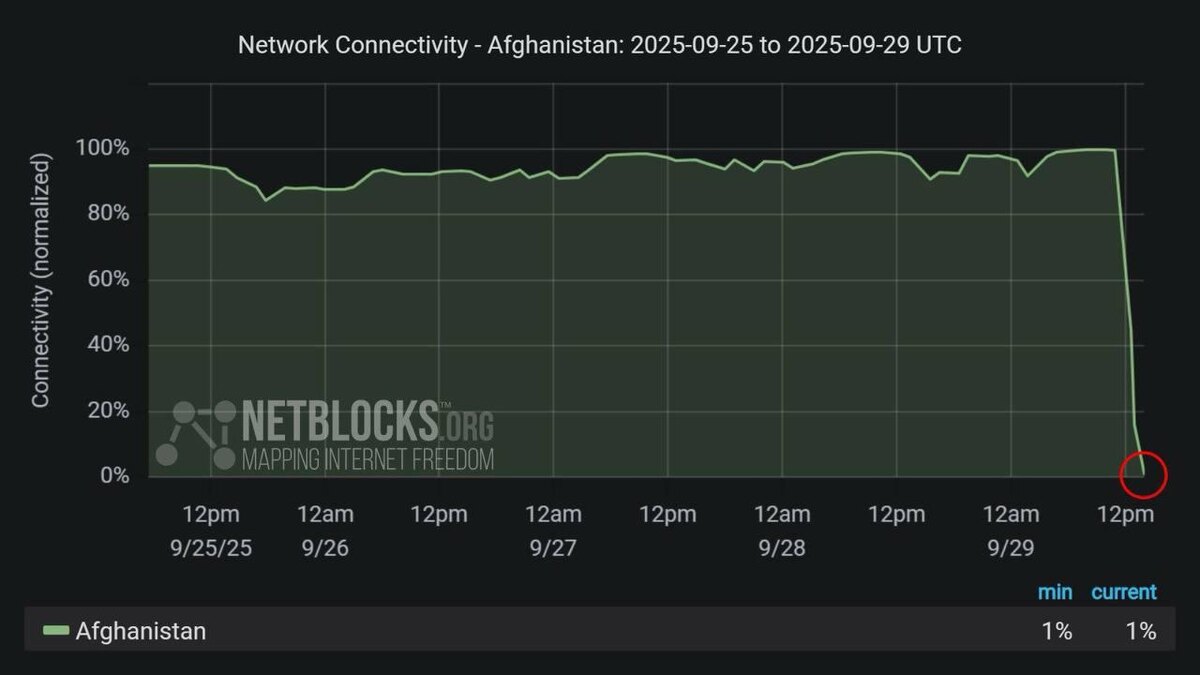 “Afg‘oniston internetdan to‘liq uzildi” — NetBlocks xalqaro internet monitoring xizmati @daryolive