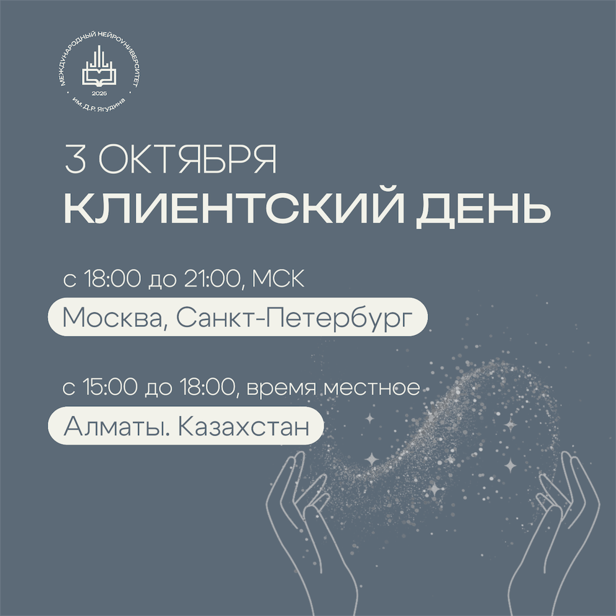 Впервые в НейроУниверситете мы проводим специальный клиентский день и приглашаем всех, кто еще ни разу не проходил сеансы нейродинамического восстановления и нейрообаяния.