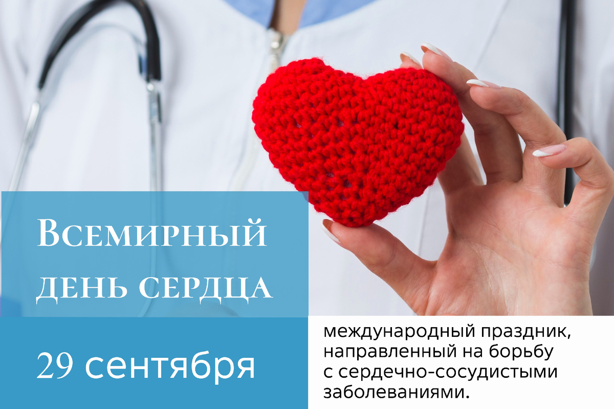 29 сентября отмечается Всемирный день сердца — международный день, призванный привлечь внимание к проблемам сердечно-сосудистых заболеваний. В современном мире забота о здоровье сердца становится всё более актуальной. Всемирный день сердца был учреждён в 1999 году Всемирной федерацией сердца. С 2011 года он проходит под девизом «Сердце для жизни», напоминая нам о важности профилактики сердечно-сосудистых заболеваний. Сердечно-сосудистые заболевания остаются главной причиной смертности во всём мире. Более 18 миллионов человек ежегодно уходят из жизни из-за проблем с сердцем. Эти цифры заставляют задуматься о необходимости профилактики и своевременной диагностики. Профилактика — ключ к здоровому сердцу. Вот основные рекомендации: 80% случаев преждевременной смерти от инфарктов и инсультов можно предотвратить, если вести здоровый образ жизни. Простые шаги сегодня могут спасти жизнь завтра. Берегите своё сердце — оно заслуживает заботы и внимания. Начните заботиться о своём здоровье п
