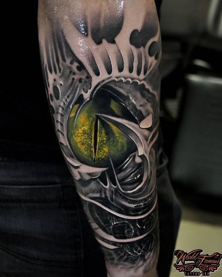 А еще это эволюция от биомеха. Все совершенствуется, становится интереснее и актуальнее. Если биомех, который я просто не переношу, уже давно не крут, то киберпанк — современный и крутой стиль, который будет актуален долгие годы. Конечно, не как реализм, который уже стал классикой) Но киберпанк — это долгая перспектива. Можно смело делать такие тату и не бояться, что завтра это будет неактуально.