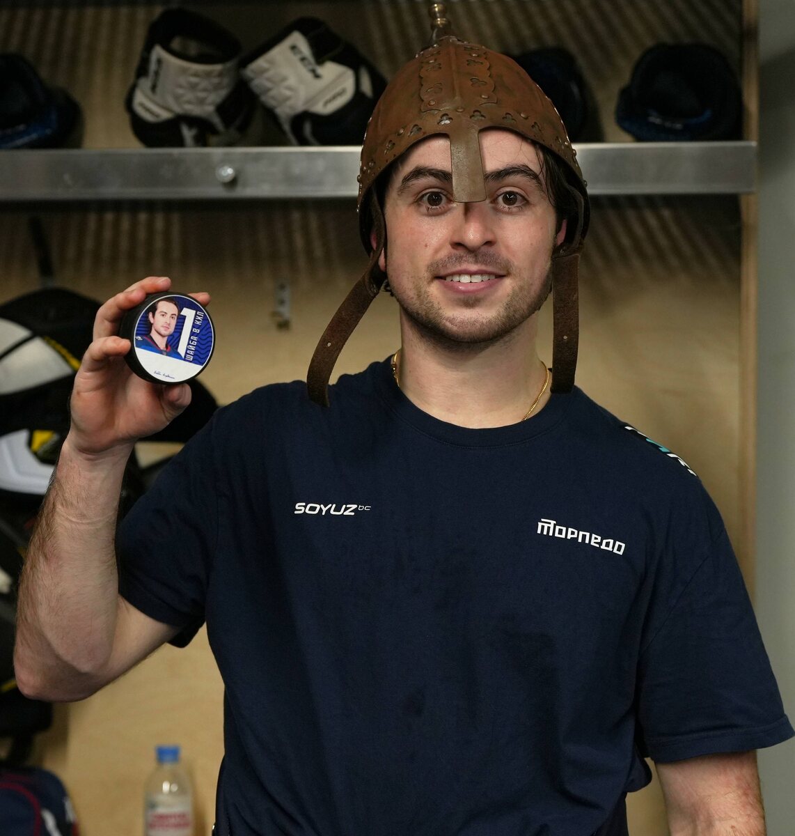 Шлем лучшего игрока сегодня у Бобби Нарделлы 🔥 Правда, третья шайба в матче в итоге записана на Влада Фирстова — Бобби, ждём официально первую в КХЛ как можно скорее 😁