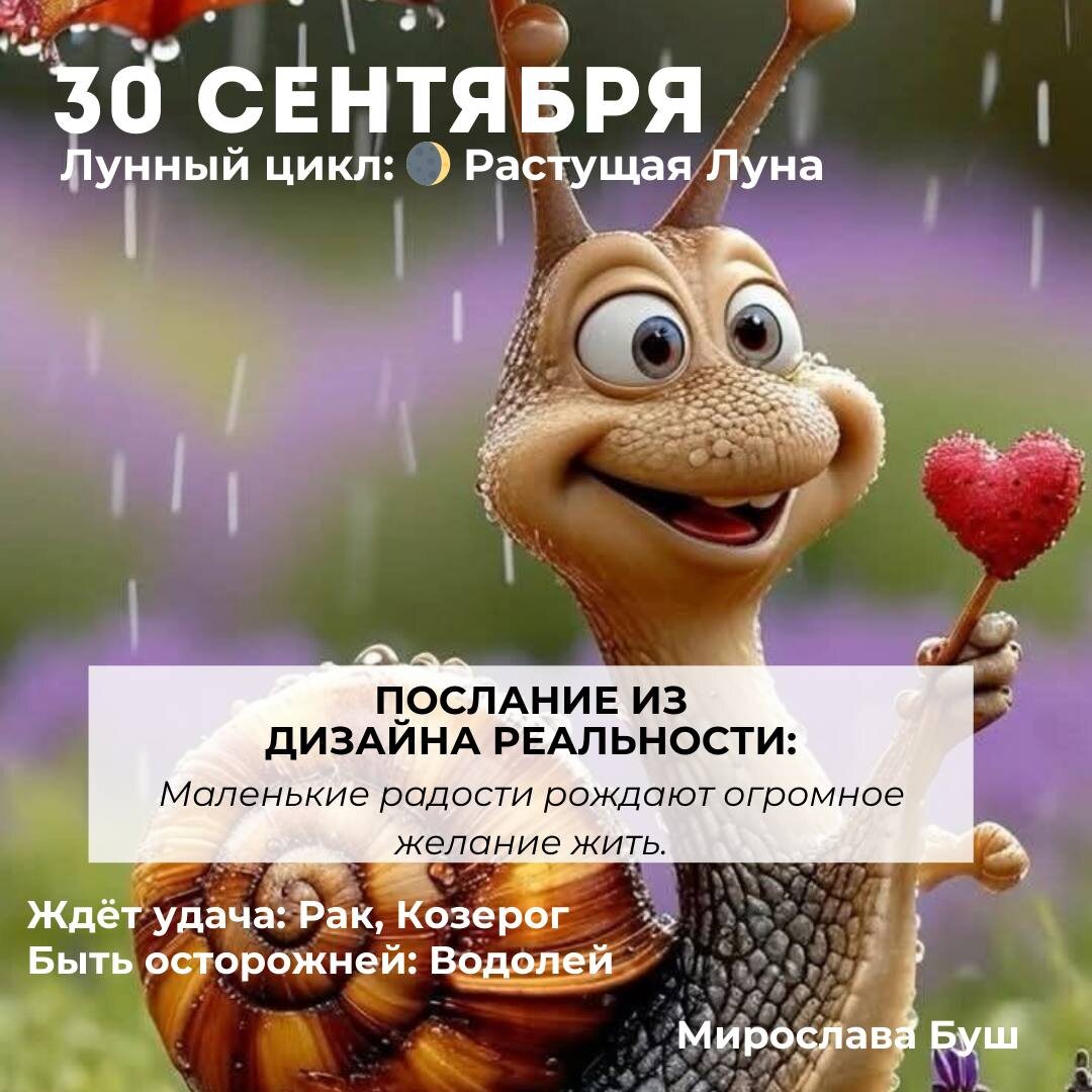 30 сентября РЕКОМЕНДАЦИИ: 🤩 Последний день месяца - бабьи именины. День, который надо посвятить себе. 🛍️ Приобретите новую одежду, сходите в парикмахерскую, купите себе или сделайте новое украшение. И обязательно вечером поешьте сладких пирогов. 🤩 Не забудьте про медитацию. А еще хорошо размышлять над своим генеалогическим древом, над своей кармой с целью уяснить прошлое и настоящее. ✉️ Подписаться на Мирославу #прогнознадень