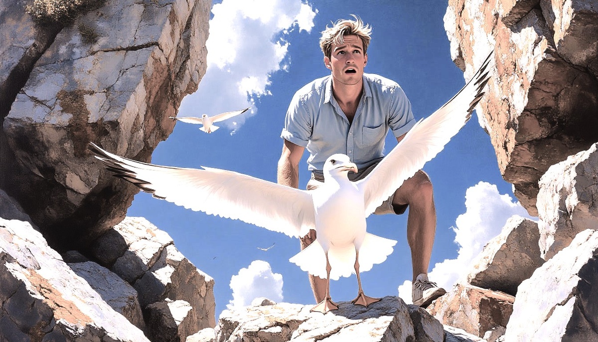 Чуть не сбив жирную чайку, отчего-то сидевшую на земле, Алексей выбежал на плато.