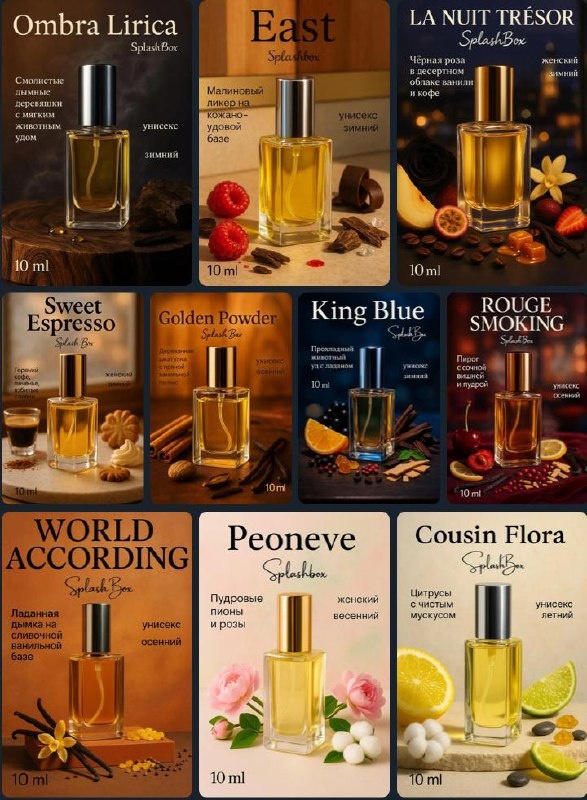 💗💗💗💗💗💗💗💗💗💗 💗💗💗💗💗💗💗 💗💗💗💗💗💗💗💗💗💗 ✅Ombra Lirica - смолистые дымные деревяшки с мягким животным удом 📌Арт. 464810824 ✅East - малиновый ликёр на кожано-удовой базе 📌Арт. 464810290 ✅Golden Powder - деревянная шкатулка с пряной ванильной пылью 📌Арт. 541668234 ✅King Blue - прохладный животный уд с ладаном 📌Арт. 541668236 ✅Rouge Smoking - пирог с сочной вишней и пудрой 📌Арт. 68421308 ✅La Nuit Tresor - черная роза в десертном облаке ванили и кофе 📌Арт. 541668237 ✅Sweet Tooth me Espresso - горячий кофе, печенье, взбитые сливки 📌Арт. 541668235 ✅Splashbox The World According to Arthur - ладанная дымка на сливочной ванильной базе 📌Арт. 544171894 ✅Peoneve - пудровые пионы и розы 📌Арт. 544171892 ✅The Blazing Mr Sam - пряный табак со сливочной ванилью 📌Арт. 544171895 ✅The Ingenue Cousin Flora - цитрусы с чистым мускусом 📌Арт. 544171893 ✅The Impudent Cousin Matthew - зеленые цитрусы и горькие пачули 📌Арт. 544171896 ✅Juliette - бархатная вишня и жасмин