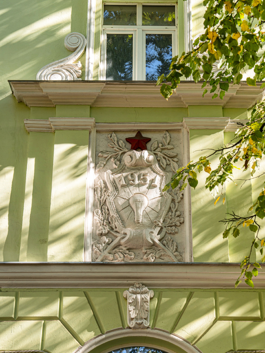 На «Доме с лампочкой» на 2-й Парковой, 18 на фасаде в картуше есть лампочка 💡 ! «Дом с лампочкой» отличный пример послевоенной малоэтажной застройки, которой так не хватает большим городам. В доме всего три этажа, и он чуть ли не единственный такой во всём районе. «Дом с лампочкой» был построен для работников Московского электро-лампового завода (МЭЛЗ) в 1951 году по проекту архитектора Георгия Чалтыкьяна. Он был главным архитектором Сталинского района, в который входило Измайлово. Дом в плане поставлен в виде буквы П, с огромным двором внутри. Вокруг много зелени, здесь тихо и уютно. В картуше над центральным входом поместили изображение лампы, символа МЭЛЗА, и год постройки - 1951. Над картушем - пятиконечная звезда. Фасады дома оформлены с присущими для послевоенного сталинского ампира элементами декора. Лестница в подъезд со стороны Парковой улицы подчеркнута огромными «волютами»-ограждениями (фото 2). Балкончики, пилястры, треугольные фронтоны, а также гирлянды и ленты разбро