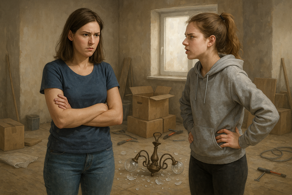 — Нет, слушай. Ты хочешь лёгкую люстру — мы купим новую. Но платим пополам — ровно. «Красиво» стоит денег, и «старшая» — это не банкомат.