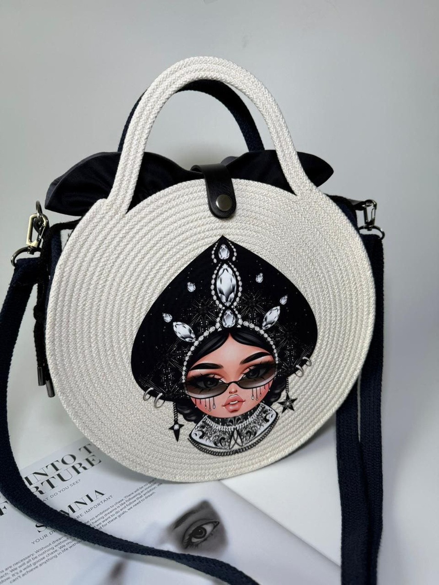 Вот такая сумка сразу же нашла себе хозяйку, но мы не можем не показать вам эту красоту❤️❤️❤️😍😍😍😍 Сумка Матрешка Из хлопкового шнура Цвет Айвори + Арабская ночь Бока сумки украшены мелкими пайетками Застежка на кнопке из натуральной кожи В сумку вложен мешочек на кулиске из плотного хлопка Ремень изготовлен из хлопкового шнура, на карабинах, регулирующийся по длине Элементы декора - термонаклейка Рок-Матрешка брюнетка 😎