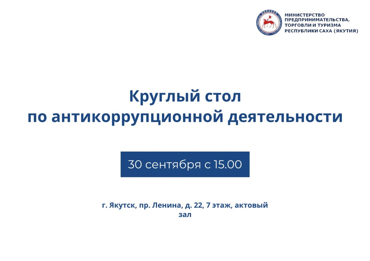 📣Министерство предпринимательства, торговли и туризма РС (Я) приглашает вас принять участие в мероприятиях в рамках Декады мероприятий, посвященных Дню предпринимательства РС(Я) и Всемирному дню туризма: 📌 30 сентября 2025 года ✔️ Круглый стол по антикоррупционной деятельности: Время проведения: с 15:00 до 16:30 ✔️ Единый день консультаций для предпринимательского сообщества: Время проведения: с 16:30 до 18:00 📍 Место проведения обоих мероприятий: г. Якутск, проспект Ленина, дом 22, 7-й этаж, актовый зал. @moibizsakha