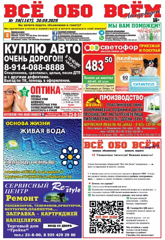 Новый 39-й номер газеты "Всё обо Всём" Лесозаводск от 30 сентября можно скачать по ссылке