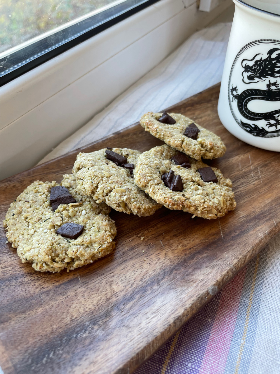 Любим эти печенья всей семьей. Сын постоянно в нетерпении бегает у духовки и ждёт, когда же они уже будут готовы))) Еще их можно на диетах вроде фудмап (лечение вздутий и др. проблем жкт), так как в сахаре немного фруктозы • Мука овсяная — 110 г (можно смолоть хлопья в блендере) • Мука из зелёной гречки — 100 г • Кабачок — 150 г (очищенный, натёртый на мелкой тёрке) • Тростниковый сахар — 60 г (можно больше по вкусу) • Горчичное масло — 50 мл • Разрыхлитель — 1 ч. л. (или сода + капля лимонного сока) • Щепотка соли • Ваниль или корица — по вкусу 1. Кабачок натереть на мелкой тёрке, слегка отжать лишнюю жидкость. 2. Смешать сухие ингредиенты: обе муки, разрыхлитель, соль, сахар, специи. 3. Добавить кабачок и масло, хорошо перемешать. Тесто должно получиться мягким, но не жидким (если слишком влажно — подсыпь немного муки). 4. Сформировать небольшие печенья (ложкой или руками), выложить на противень с бумагой. 5. Выпекать при 180 °C 18–20 минут, до золотистого края. Можно добавить к