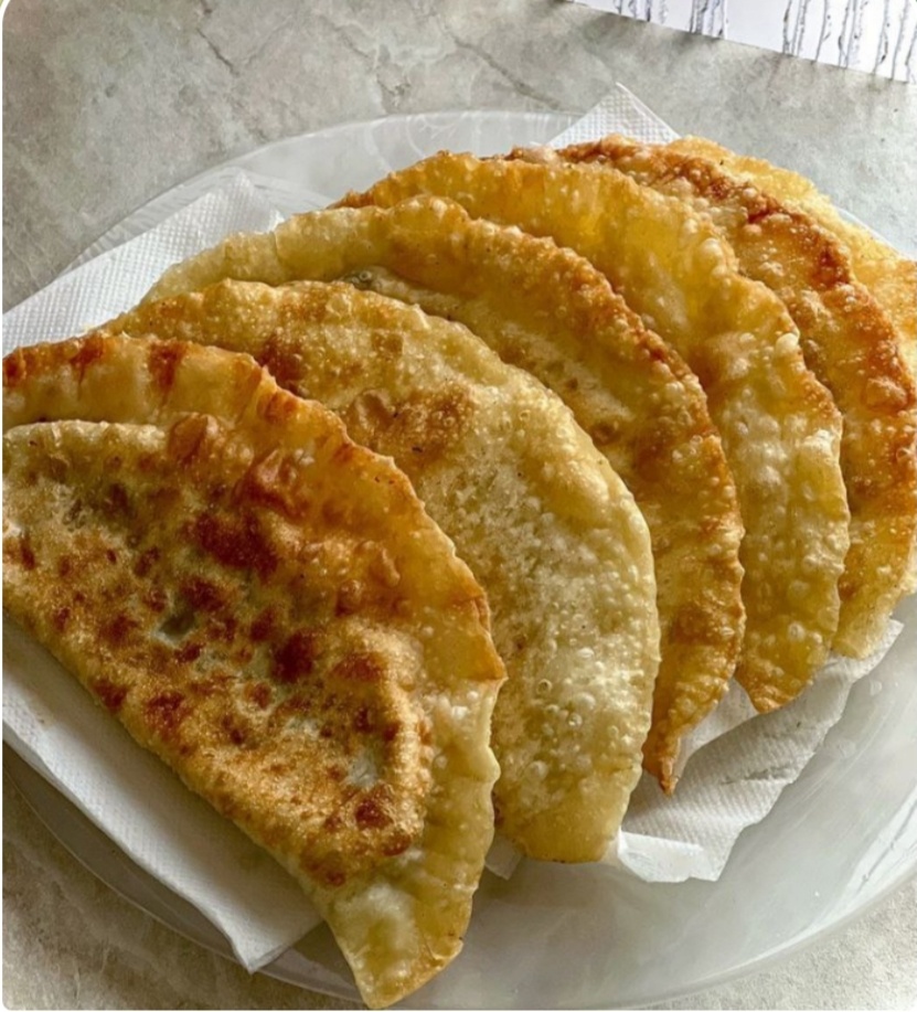 Ингредиенты: Мука - 4 стакана Вода - 1,5 стакана Водка - 1 ст. л. Яйца куриные - 1 шт. Масло растительное - 2 ст. л. Соль - 0,5 ч. л. Сахар - 0,5 ч. л. Фарш свиной - 500 г Лук репчатый - 2 шт. 🔥 Приготовление: 1. В миску перекладываем фарш, который сделали из нескольких видов мяса. Смешиваем фарш с зеленью и луком. 2. В миску высыпаем муку, в нее выливаем стакан горячей воды и высыпаем щепотку соли. 3. Перемешиваем тесто руками или лопаткой и получаем заварной вариант теста. 4. В другой миске смешиваем муку с разбитым яйцом, растительным маслом, водкой и солью с сахаром. 5. Затем выливаем заварное тесто и перемешиваем всю смесь руками. Тесто заворачиваем пленкой и оставляем настаиваться. 6. По прошествии получаса, раскатываем сочники и на тесто выкладываем немного фарша. 7. Закрепляем края руками и придавливаем вилкой. Чебуреки раскладываем на сковороде и обжариваем до коричневой корочки.