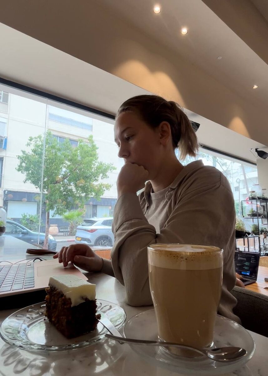 Меня манила это картинка! Но все, что я могла себе позволить без зазрения совести – это выполнять внеучрочные задания: проверить дз, подготовиться к speaking club и тд. Но вести урок.. мне казалось это крайне неудобным: вокруг ходят люди, могут быть громкие дети, а ещк фоновая музыка. Но на этой неделе у меня не было других вариантов, кроме как провести урок в кафе. Я очень переживала! Какой итог: ученица сказала, что не заметила лишнего шума, а это было самым главным для меня. Так что можно сказать, что эксперимент удачным. Буду ли вести уроки из кафе я еще? Возможно, но с условием, что это просторное кафе, где работа за ноутбуком – это норма. А так же уроки должны быть до 11:30. К полудню шум просто нарастал в геометричсекой прогрессией. В остальном стеснения не было: могла спокойно говорить, хороший интернет, а кофе рядом грело душу😁 А какое у вас мнение про уроки из кафе?