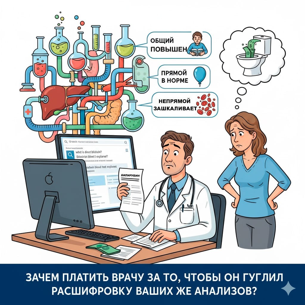 Смешно, но факт: 34% терапевтов не могут с ходу объяснить разницу между прямым и непрямым билирубином. А вы должны понимать, почему у вас "слегка повышен общий, но прямой в норме"? Вот переводчик с медицинского на человеческий: - Общий билирубин повышен = печень работает как студент перед сессией - Прямой в норме = желчный пузырь не виноват - Непрямой зашкаливает = либо эритроциты разрушаются слишком быстро, либо печень не справляется с нагрузкой